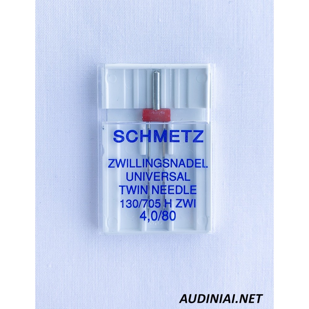 Schmetz firmos, universali dviguba siuvimo adata skirta visoms buitinėms siuvimo mašinoms. Tai kokybiškos, Vokietijoje gaminamos adatos. Adatų storį rinktis reikėtų atsižvelgiant į siuvamą audinį. Taip pat norime paminėti, jog siekiant išgauti kokybišką bei tvarkingą siūlę, pagal adatų storį reikėtų rinktis ir atitinkamo storio siūlus.