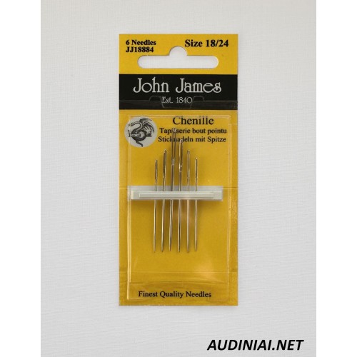 Gamintojo John James adatos siuvinėjimui yra sukurtos pagal bendros paskirties adatų modelį t.y. aštrios, vidutinio storio adatos. Vienintelis šių adatų skirtumas – prailginta akutė siūlo įvėrimui. Tokio tipo akutė leis patogiau įverti net ir kelias siuvinėjimo siūlų gijas. Rinkinį sudaro dvylika skirtingų ilgių adatų.