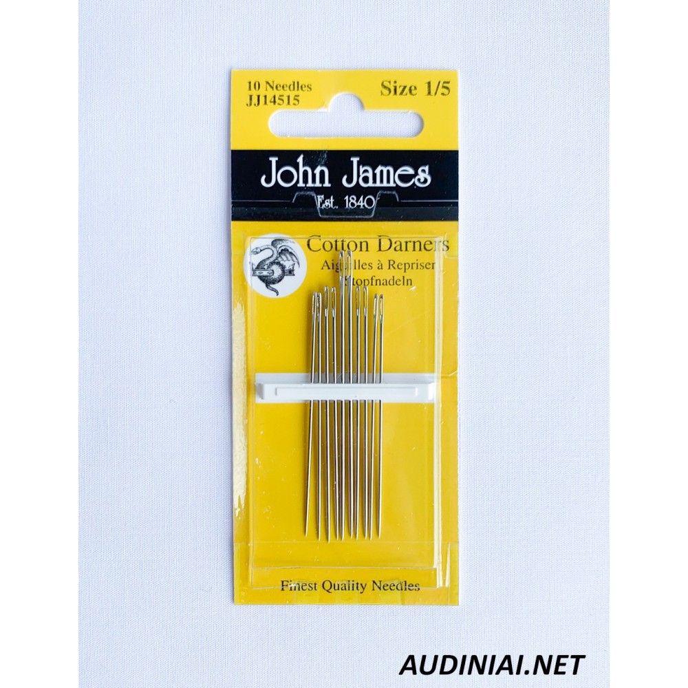 Ilgos ir aštrios gaminto John James adatos audinių adymui. Tai aštrios, vidutinio storio adatos. Renkantis tinkamą adatų ilgį, jas galima naudoti tiek su ploniausiais šilko audiniais, tiek ir su storiausiais gobelenais. Šias adatas taip pat galite naudoti ir baziniams siuvimo veiksmams. Rinkinį sudaro dešimt skirtingų ilgių adatų. Akutė siūlo įvėrimui – vidutinio dydžio.
