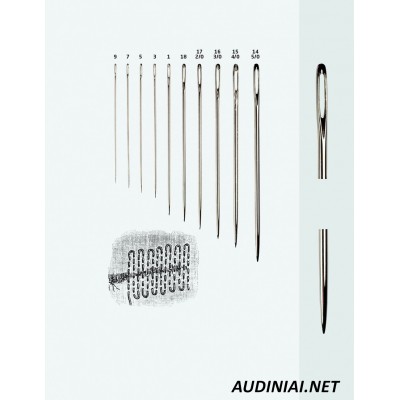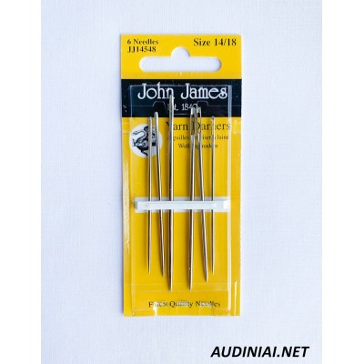 Ilgos ir aštrios gaminto John James adatos audinių adymui. Tai aštrios, vidutinio storio adatos. Renkantis tinkamą adatų ilgį, jas galima naudoti tiek su ploniausiais šilko audiniais, tiek ir su storiausiais gobelenais. Šias adatas taip pat galite naudoti ir baziniams siuvimo veiksmams. Rinkinį sudaro šešios skirtingų ilgių adatos. Akutė siūlo įvėrimui – vidutinio dydžio.