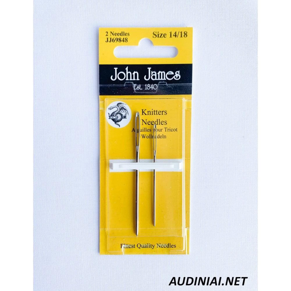 Gamintojo John James adatos mezgėjams yra klasikinio modelio adatos išsiskiriančios savo dydžiu. Tai bukos, vidutinio storio adatos. Kitas išskirtinis šių adatų bruožas – stambi akutė siūlo įvėrimui. Dėl šios priežasties jos klasifikuojamos kaip tinkamiausias pasirinkimas mezgėjoms. Rinkinį sudaro dvi skirtingų ilgių adatos.