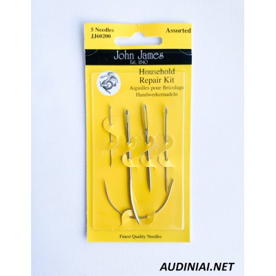 John James gamintojo bendros paskirties adatų komplektas. Aštrios, vidutinio storio adatos naudojamos visiems buityje pasitaikantiems siuvimo darbams. Šį komplektą sudaro dvi tiesios, pusiau tiesi, pusapskritimiu lenkta adatos, bei adata odai.