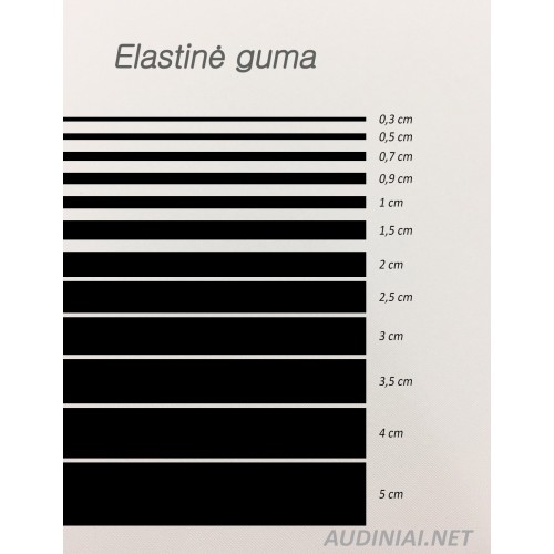 Plokščia elastinė guma - įvairiems jūsų siuvimo projektams. Elastinės gumos gali būti naudojamos tiek pagal savo tiesioginę funkciją, tiek ir kaip dekoracijos. Tai tvirta, tankiai suausta, ilgai tamprumo neprarandanti guma.