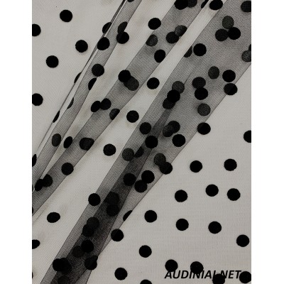 Itin žaismingai atrodantis taškuotas tiulis. Tai tamprus, kritesnis, 12 milimetrų skersmens floko (savo tekstūra primenančiais veliūrą) taškeliais dekoruotas tinklelis. Šį tiulį galite rinktis drabužių ar jų detalių, įvairių aksesuarų ar šventiškiausių švenčių dekoro elementų kūrimui.
