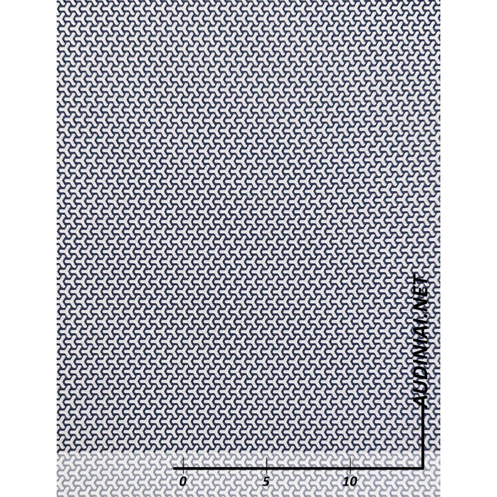 Tai baltos ir tamsiai mėlynos spalvų audinys.