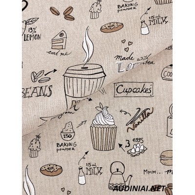 Olandiškas deko audinys - natūralaus lininio audinio tekstūrą ir spalvą puikiai atkartojantis pluoštas pagamintas iš medvilnės ir poliesterio. Tokia sudėtis užtikrina lengvą gaminio priežiūrą, bei audinio tvirtumą. Skirtingų tematikų raštai puikiai atrodo tiek derinami tarpusavyje, tiek su vienspalviais audiniais, ar kategorijos "Kalėdiniai audiniai" audiniais. Naudojami įvairių krepšelių, dekoratyvinių pagalvėlių, romanečių, netgi prijuosčių, staltiesių ar puodkėlių siuvimui. Taip pat ir dekoratyvinių aprangos detalių gaminimui.