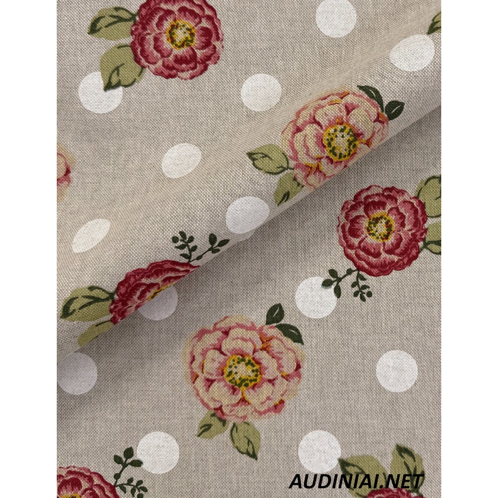 Olandiškas deko audinys - natūralaus lininio audinio tekstūrą ir spalvą puikiai atkartojantis pluoštas pagamintas iš medvilnės ir poliesterio. Tokia sudėtis užtikrina lengvą gaminio priežiūrą, bei audinio tvirtumą. Skirtingų tematikų raštai puikiai atrodo tiek derinami tarpusavyje, tiek su vienspalviais audiniais, ar kategorijos "Kalėdiniai audiniai" audiniais. Naudojami įvairių krepšelių, dekoratyvinių pagalvėlių, romanečių, netgi prijuosčių, staltiesių ar puodkėlių siuvimui. Taip pat ir dekoratyvinių aprangos detalių gaminimui.