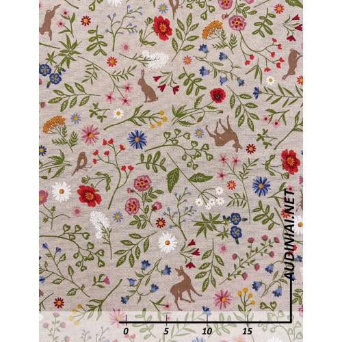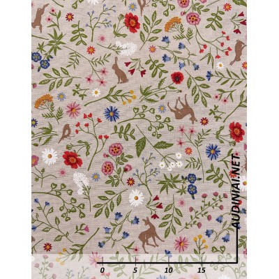 Olandiškas deko audinys - natūralaus lininio audinio tekstūrą ir spalvą puikiai atkartojantis pluoštas pagamintas iš medvilnės ir poliesterio. Tokia sudėtis užtikrina lengvą gaminio priežiūrą, bei audinio tvirtumą. Skirtingų tematikų raštai puikiai atrodo tiek derinami tarpusavyje, tiek su vienspalviais audiniais, ar kategorijos "Kalėdiniai audiniai" audiniais. Naudojami įvairių krepšelių, dekoratyvinių pagalvėlių, romanečių, netgi prijuosčių, staltiesių ar puodkėlių siuvimui. Taip pat ir dekoratyvinių aprangos detalių gaminimui.