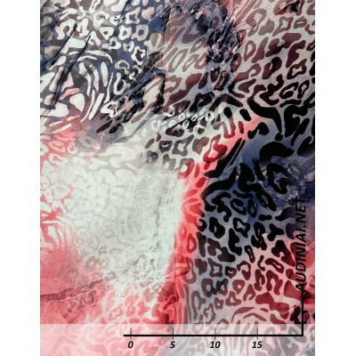 Išraiškingais raštais margintas trikotažas Jersey. Tai itin gero, sunkaus kritimo ir kiek slidus trikotažas, kurį rekomenduojame rinktis tiek laisvesnių, tiek ir daugiau prigludusių suknelių, sijonų ar įvairių modelių palaidinių siuvimui. Tamprus, vidutinio storio ir visiškai neperregimas, neglamžus, 100% poliesterio trikotažas.