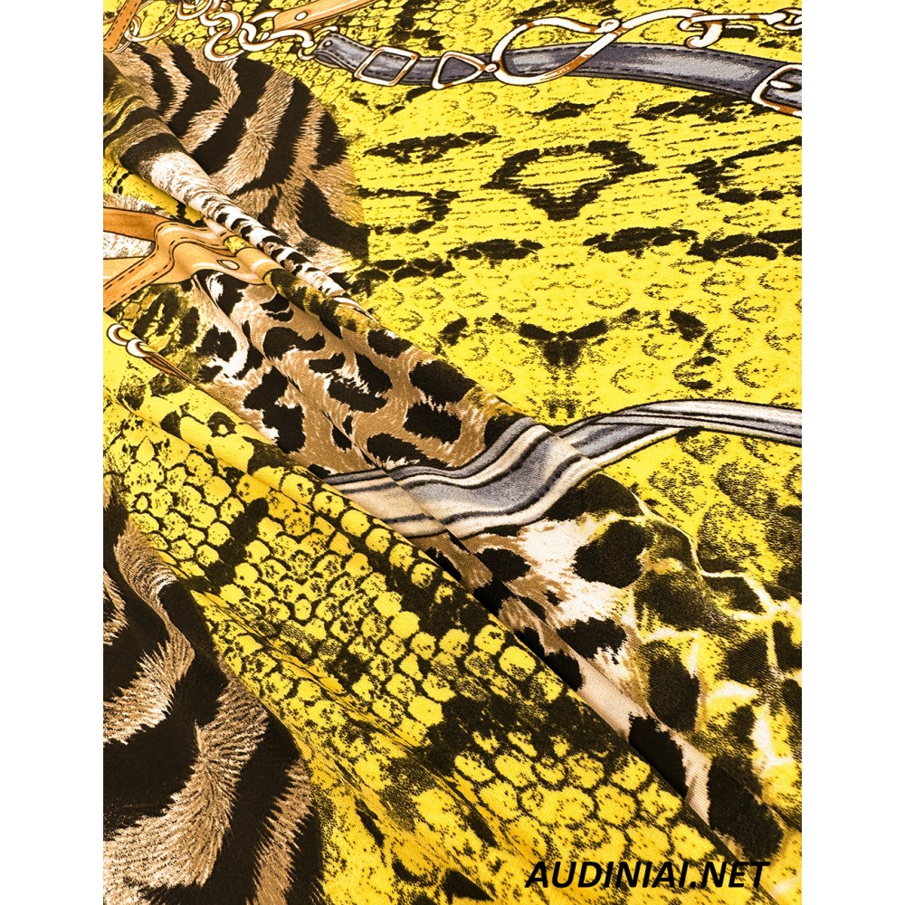 Išraiškingais raštais margintas trikotažas Jersey. Tai itin gero, sunkaus kritimo ir kiek slidus trikotažas, kurį rekomenduojame rinktis tiek laisvesnių, tiek ir daugiau prigludusių suknelių, sijonų ar įvairių modelių palaidinių siuvimui. Tamprus, vidutinio storio ir visiškai neperregimas, neglamžus, 100% poliesterio trikotažas.
