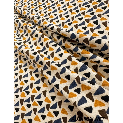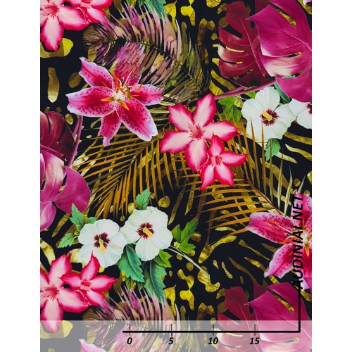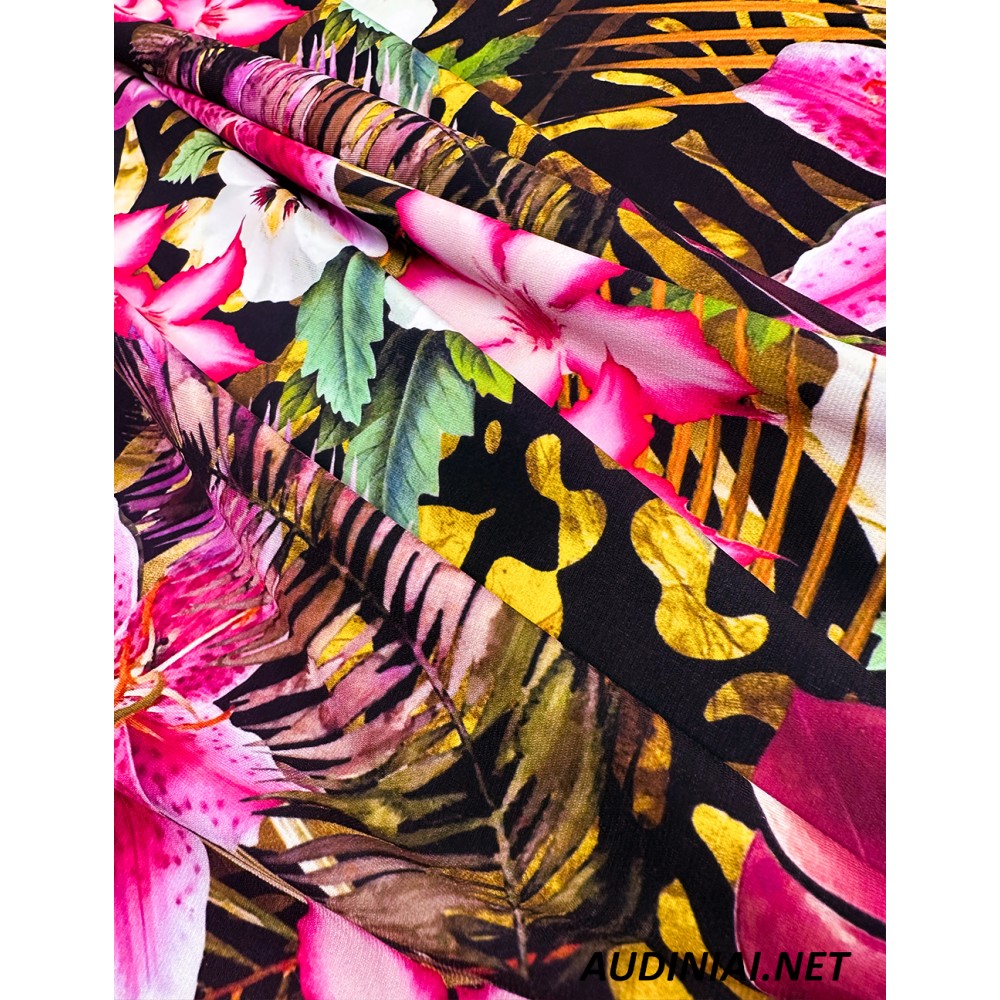 Išraiškingais raštais margintas trikotažas Jersey. Tai itin gero, sunkaus kritimo ir kiek slidus trikotažas, kurį rekomenduojame rinktis tiek laisvesnių, tiek ir daugiau prigludusių suknelių, sijonų ar įvairių modelių palaidinių siuvimui. Tamprus, vidutinio storio ir visiškai neperregimas, neglamžus, 100% poliesterio trikotažas.