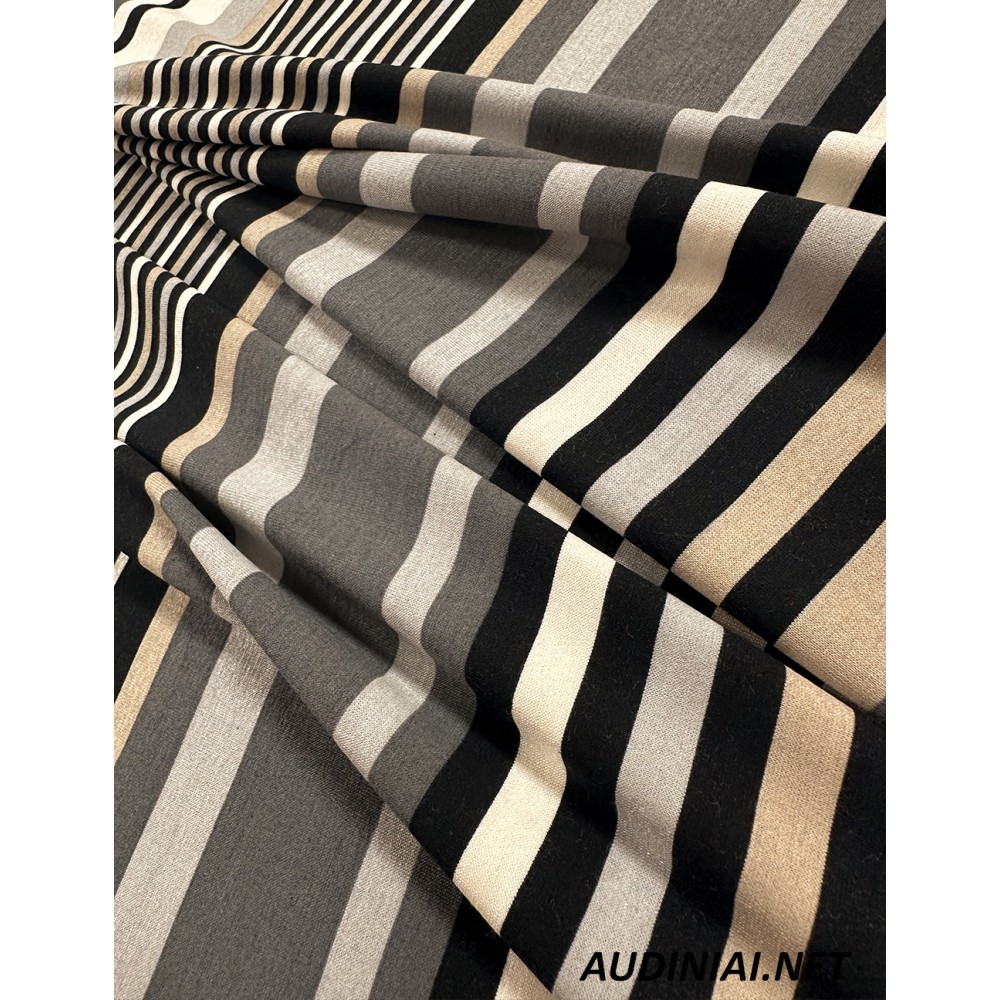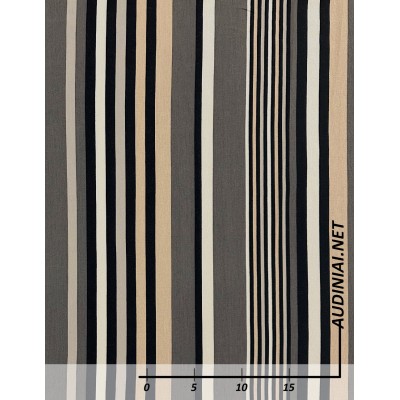 95% viskozės ir 5% elastano raštuotas trikotažas Jersey. Šis, įvairių pločių dryžiais margintas trikotažas puikiai tiks laisvesnių suknelių, palaidinių ar sijonų siuvimui. Tai vidutinio storio, neperšviečiamas trikotažas.