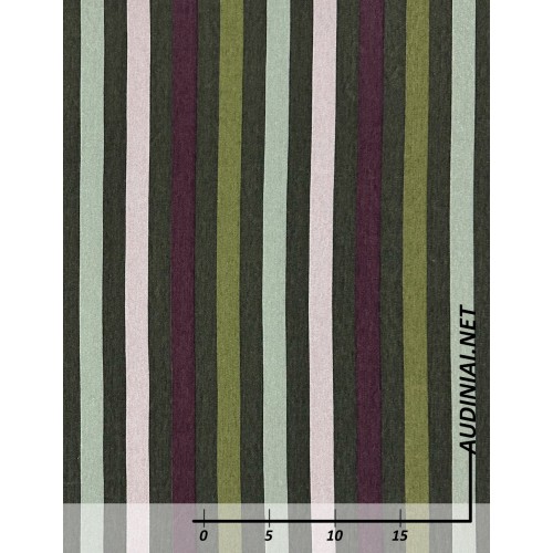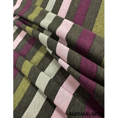 Vidutinio storio, vertikalių dryžių trikotažas Jersey. Šį neperšviečiamą trikotažą rekomenduojame rinktis visų tipų viršutinių drabužių ar aksesuarų siuvimui. Tai tamprus, 62% poliesterio, 32% viskozės ir 6% elastano trikotažas.