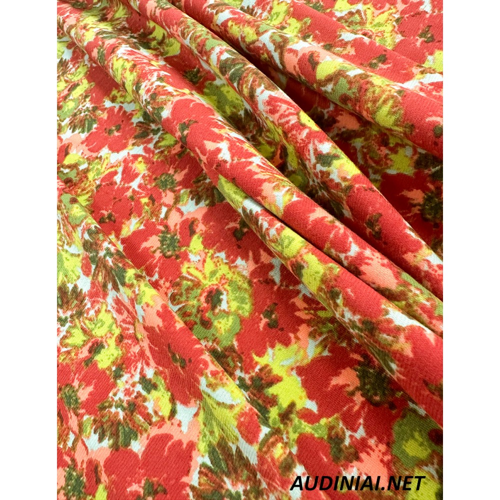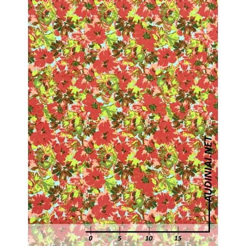 100% medvilnės raštuotas trikotažas Jersey. Tai mažiau tamprus, gero kritimo, spalvingais gėlių raštais margintas trikotažas. Vidutinio storio, neperšviečiamas trikotažas yra puikus pasirinkimas laisvesnių suknelių ar palaidinių, sijonų siuvimui.