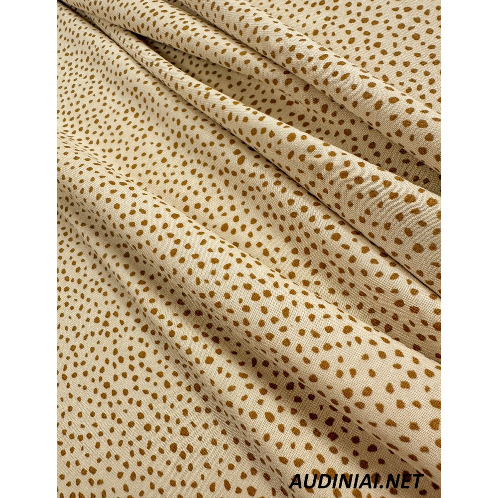 100% medvilnės raštuotas trikotažas Jersey. Šis, itin smulkiu raštu margintas trikotažas puikiai tiks laisvesnių suknelių, palaidinių ar sijonų siuvimui. Tai vidutinio storio, neperšviečiamas trikotažas.