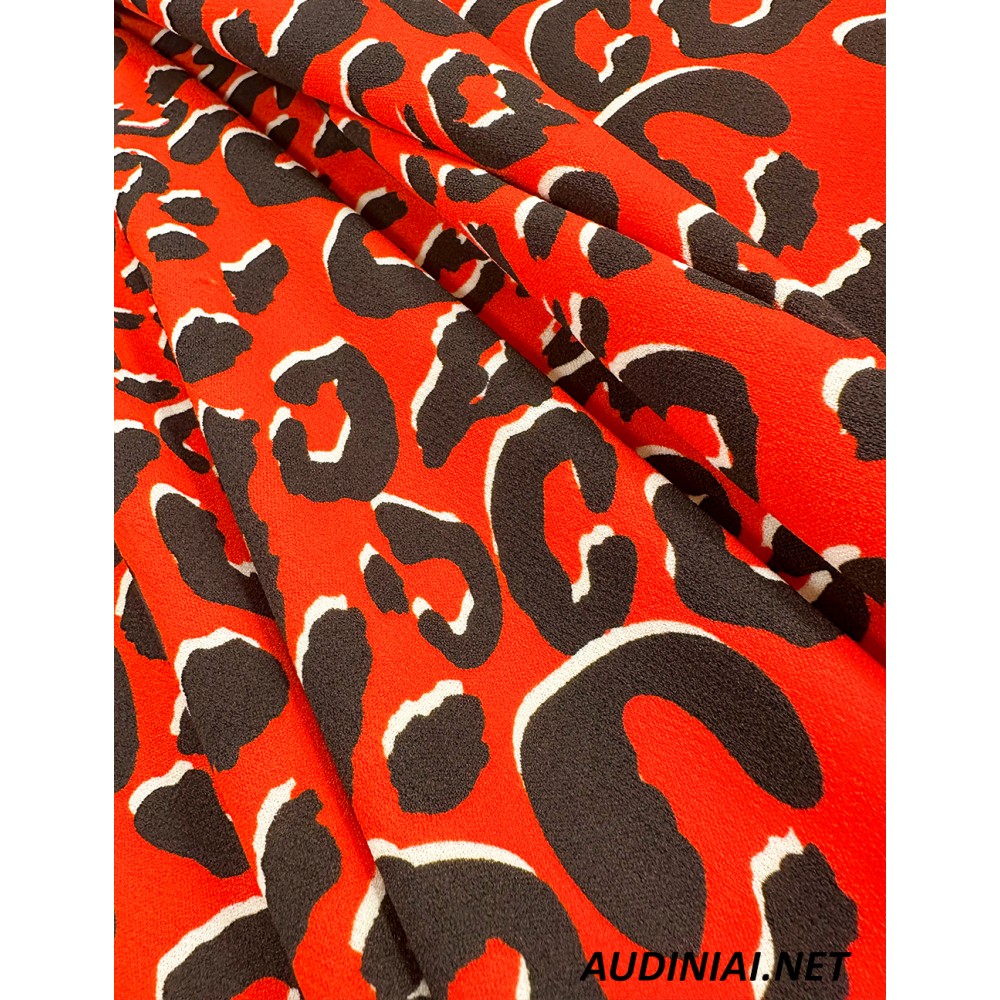 100% poliesterio raštuotas trikotažas Jersey. Tai neperšviečiamas, gero kritimo ir kiek slidus trikotažas. Šis trikotažas yra puikus pasirinkimas laisvesnių suknelių ar palaidinių, sijonų siuvimui.