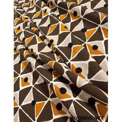 95% viskozės ir 5% elastano, itališkas trikotažas Jersey. Šis, smulkiu raštu margintas trikotažas puikiai tiks laisvesnių suknelių, palaidinių ar sijonų siuvimui. Tai vidutinio storio, neperšviečiamas trikotažas.