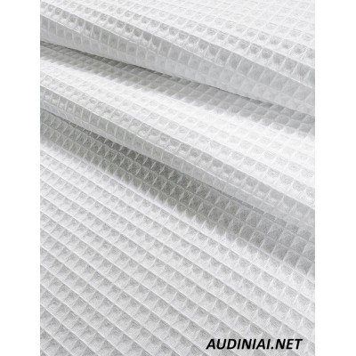 100% medvilnės, prancūziškas vaflinis audinys. Tokio tipo audinys, dar vadinamas koriuku, dažniausiai naudojamas virtuviniams ar vonios rankšluosčiams siūti. Anksčiau minėtas audimo būdas pasižymi tuo, jog puikiai sugeria įvairaus tipo skysčius. Šio gamintojo, itin purios tekstūros vaflinius audinius drąsiai rekomenduojame ir pledų, chalatų ar apsiaustų siuvimui. Langelio dydis 6 milimetrai x 10 milimetrų. Gamintojo papildomai apdorotas natūralus audinys prieš naudojimą jau nebeskalbiamas ir beveik nebesitraukia.